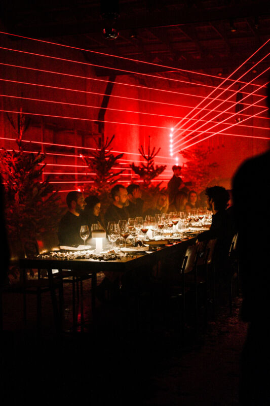 La serata si è conclusa con una cena esperienziale ideata da Tavolata, che ha tradotto i contenuti tecnici del prodotto in un racconto sensoriale. Atmosfere ovattate, richiami al paesaggio alpino e tagli di luce laser rossa – colore simbolo dell’anima race di Nordica – hanno trasformato lo spazio in una scenografia capace di evocare l’adrenalina della pista e la magia della montagna.