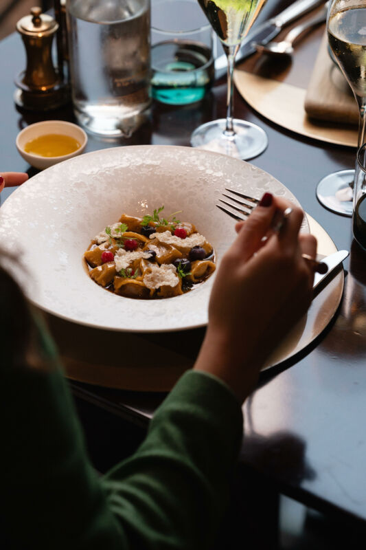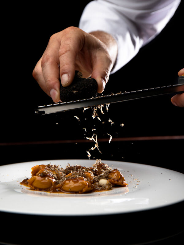 Al Ristorante II Palagio, all’interno del Four Seasons Firenze, l’esperienza legata al tartufo toscano si declina su due livelli complementari. Da un lato il piatto, dall’altro il territorio. Gli ospiti possono scegliere di concentrarsi sull’assaggio oppure di ampliare l’esperienza con un’escursione a San Miniato, città medievale simbolo del tartufo: dal mercato all’aperto dedicato fino alla ricerca nei boschi insieme a un esperto tartufaio e al suo cane. A tavola, gli agnolotti di galletto alla livornese con tartufo nero di San Miniato, zenzero e funghi cardoncelli marinati raccontano la Toscana attraverso un equilibrio tra tradizione, profondità aromatica e tocchi contemporanei dello chef Paolo Lavezzini.