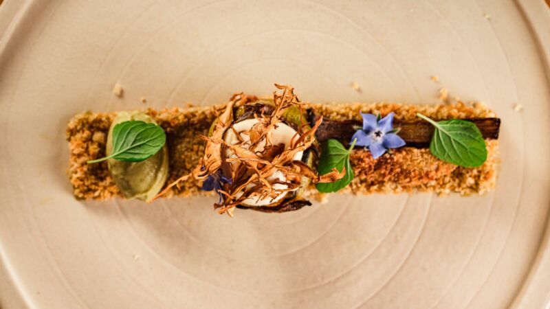 Nel suo “Assoluto di Carciofo”, Andrea Lattanzi porta in scena un omaggio totale al carciofo violetto, interpretato come un ingrediente da esplorare in ogni sua sfumatura. Il piatto diventa un viaggio sensoriale che attraversa consistenze e temperature, dal cuore morbido alle foglie trasformate in elementi croccanti o in creme setose. Lattanzi costruisce un racconto gastronomico che celebra la purezza vegetale, elevando il carciofo a icona contemporanea di eleganza culinaria. Una visione che unisce tecnica, sostenibilità e un’estetica essenziale, perfetta per chi vive il cibo come un’esperienza culturale che emoziona.