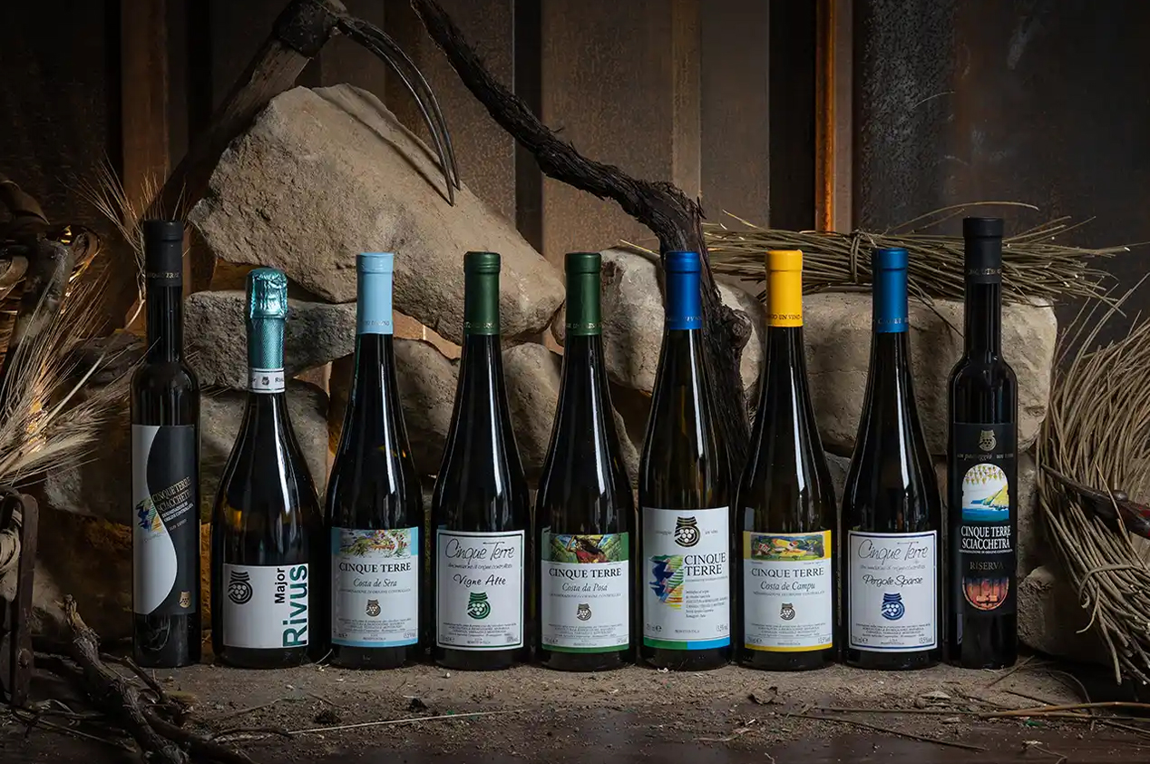 La Cantina Cinque Terre produce una gamma di vini che celebrano l’autenticità e la biodiversità del territorio. Il Cinque Terre Sciacchetrà Doc è il prodotto di punta. Celebre anche nella letteratura, è stato descritto da D’Annunzio come “quel fiero Sciacchetrà che si pigia nelle cinque pampinose terre”. Carducci invece lo definì “essenza di tutte le ebrezze dionisiache”. Accanto a questo, la Cantina Cinque Terre offre il Cinque Terre Doc, un vino bianco secco e minerale. I vitigni, tra cui il Bosco, l’Albarola e il Vermentino, crescono su terreni ben drenati e facilmente permeabili, esposti al sole e al calore, che accelerano la maturazione delle uve.